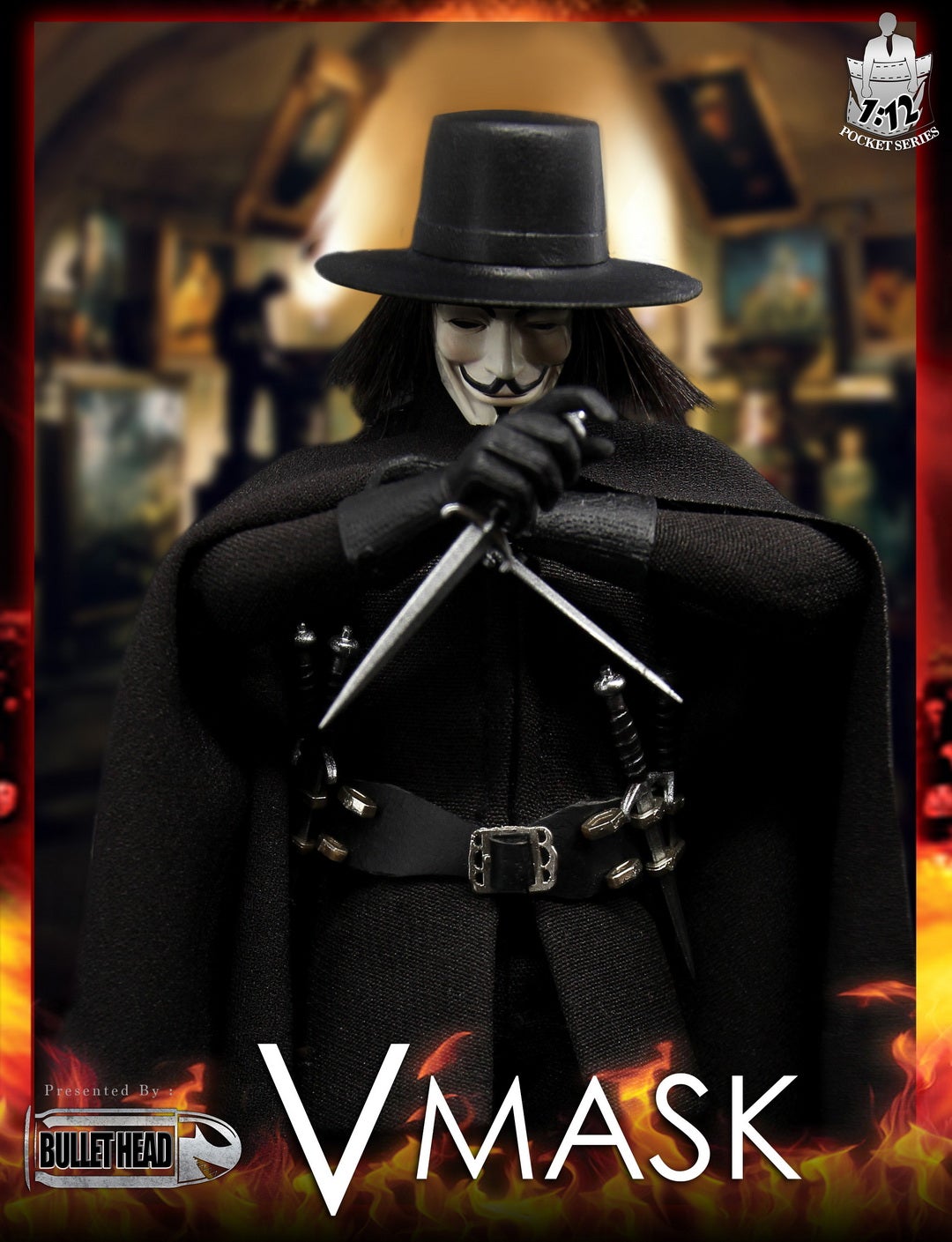 The 1/12th Scale V Mask Figure features: