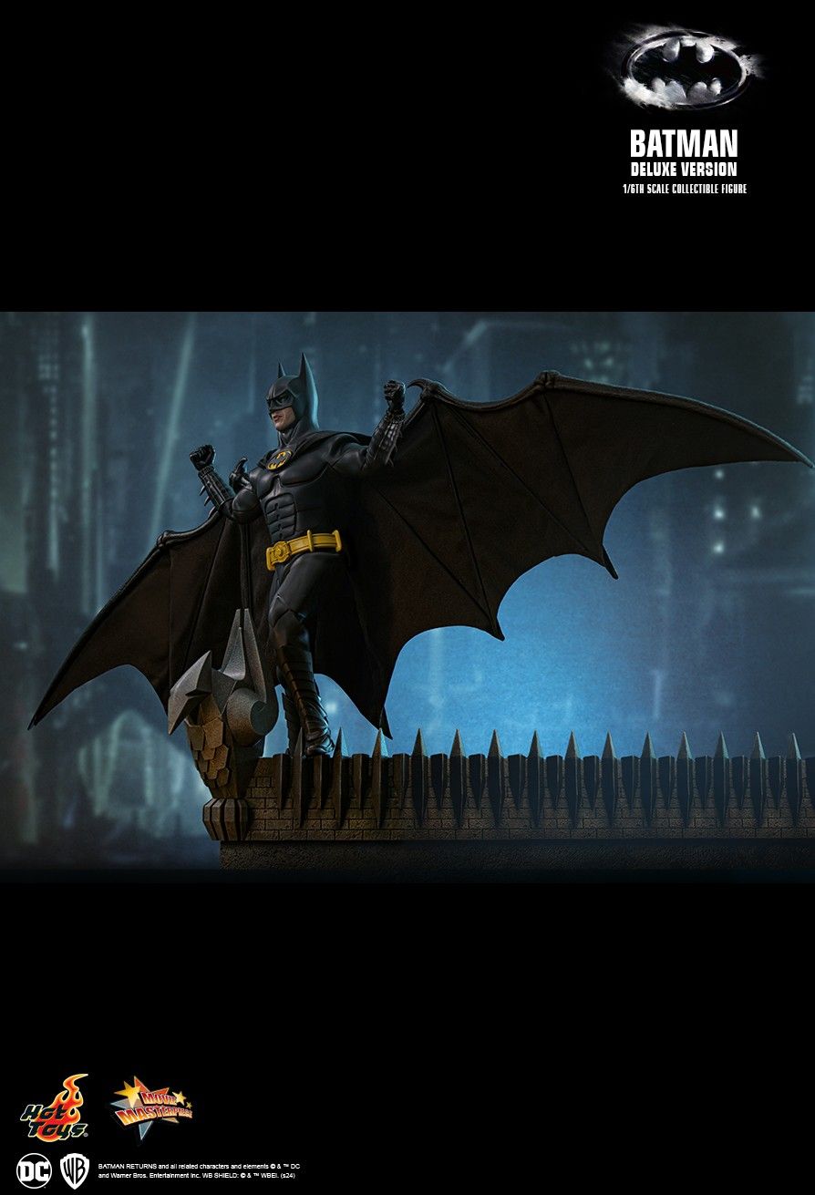 The highly-detailed 1/6th scale figure perfectly captures Michael Keaton’s Batman appearance in Batman Returns, featuring a Batman cowled head with separate rolling eyeballs and interchangeable lower faces; a newly developed specialized body that perfectly showcases Batman’s toned physique and is elevated by the newly tailored detailed Batsuit; an additional highly detailed wingsuit to recreate Batman’s wide-open pose aside from black fabric cape; Batman’s gadgets including newly designed line launcher with a pair of zip-lines, grapple gun, batarang, napalm capsules, rocket launch controller, Batmobile remote.