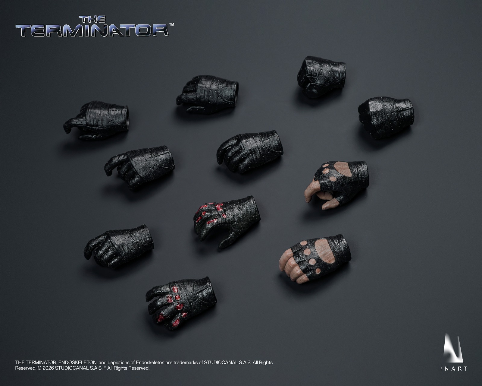 The INART T-800 1/6 Collectible Figure is based on its iconic appearance from The Terminator and features INART articulated eye system. The figure faithfully recreates the T-800 look down to every unique and minute screen-accurate detail. Crafted with carefully selected genuine lambskin leather, the real leather jacket is precisely tailored with accurate proportions, while even the smallest zippers are faithfully replicated with reference to the original film props. A rich selection of interchangeable hands are included, featuring standard gloved hands, battle-damaged gloved hands, and an additional pair of fingerless gloves as seen in the promotional poster - providing for endless display possibilities.