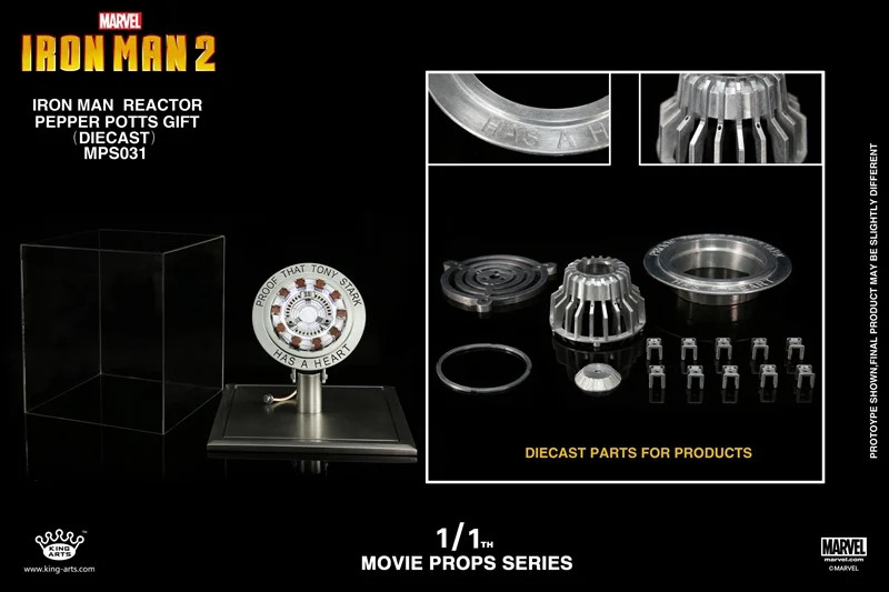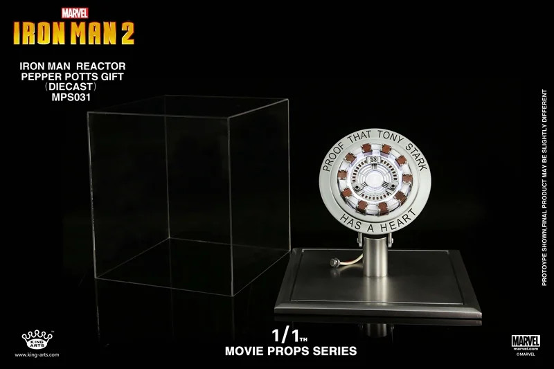 Based on the gift Pepper Potts gives to Tony in Iron Man 2, now you can have your own proof that Tony Stark has a heart. This full-scale King Arts Iron Man reactor replica features die-cast parts and can be displayed in the included acrylic case.